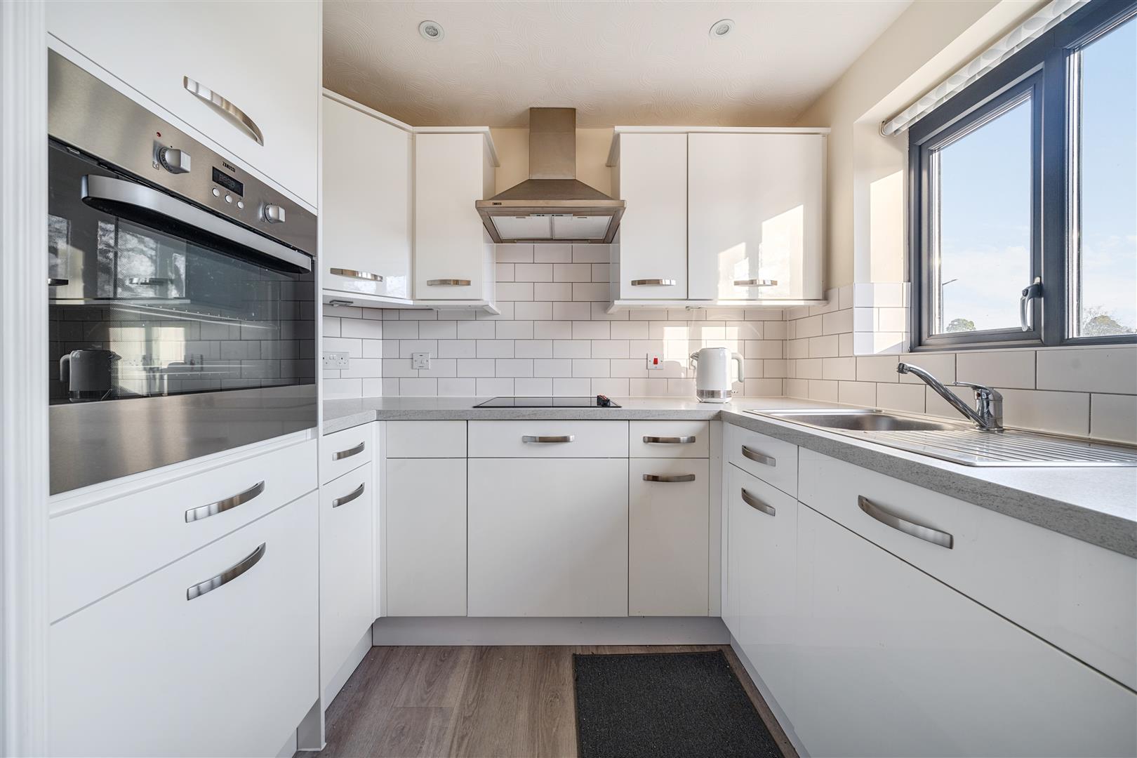 The Kitchen offers a range of modern eye and base level units with working surfaces over and tiled splashbacks. There is a built-in waist height oven, 4 ring electric hob, washer/dryer, fridge and freezer. A window provides light and ventilation.