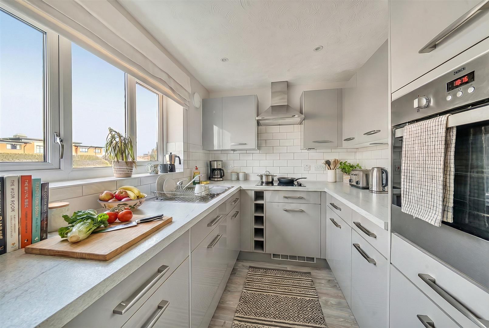 The Kitchen is accessed via the Lounge and offers a range of eye and base level units with working surfaces over and tiled splashbacks. There is a built in waist height oven, 4 ring electric hob with extractor hood over, a fridge and a freezer. A window allows for light and ventilation.
