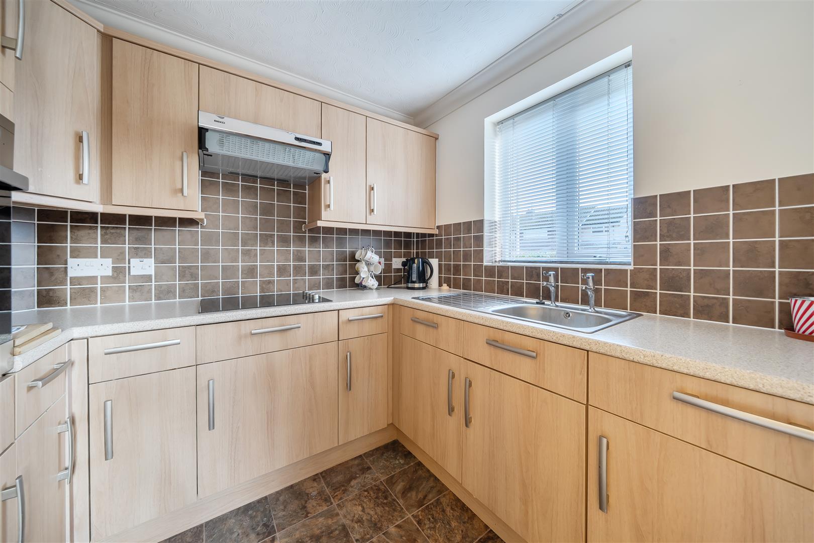 The kitchen offers a range of eye and base level units with working surfaces over and tiled splashbacks. There is a built in waist height oven, 4 ring electric hob, fridge and freezer. A window provides light and ventilation.
