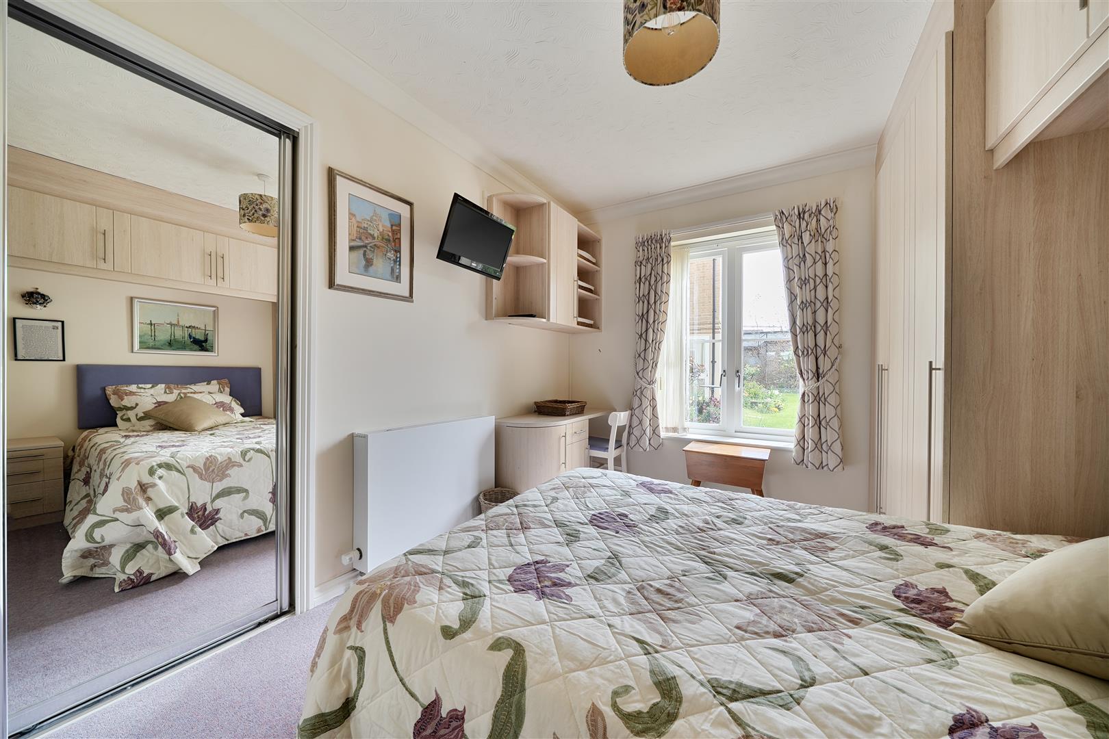 The bedroom is a good sized double room with a built in mirrored wardrobe plus ample fitted furniture. A tall window keeps this lovely bedroom bright and airy while also providing those lovely garden views.