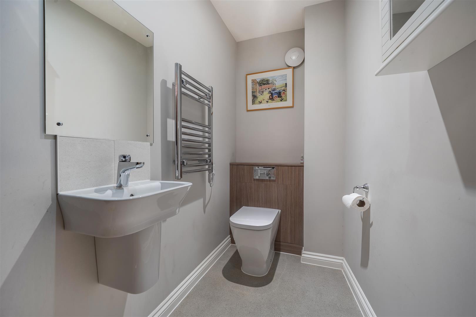 A separate WC is located off the hallway and offers a WC, wash hand basin and heated towel rail.