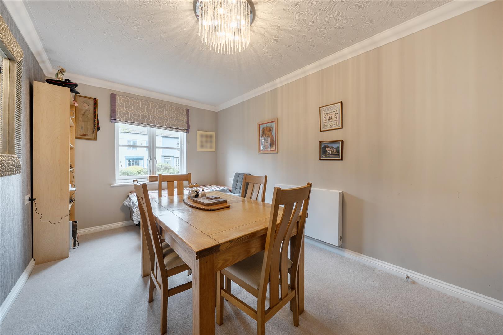 The living room offers ample space for living and dining room furniture and benefits from a feature electric fire with attractive surround. A window provides lots of natural light and a door leads through to the kitchen.