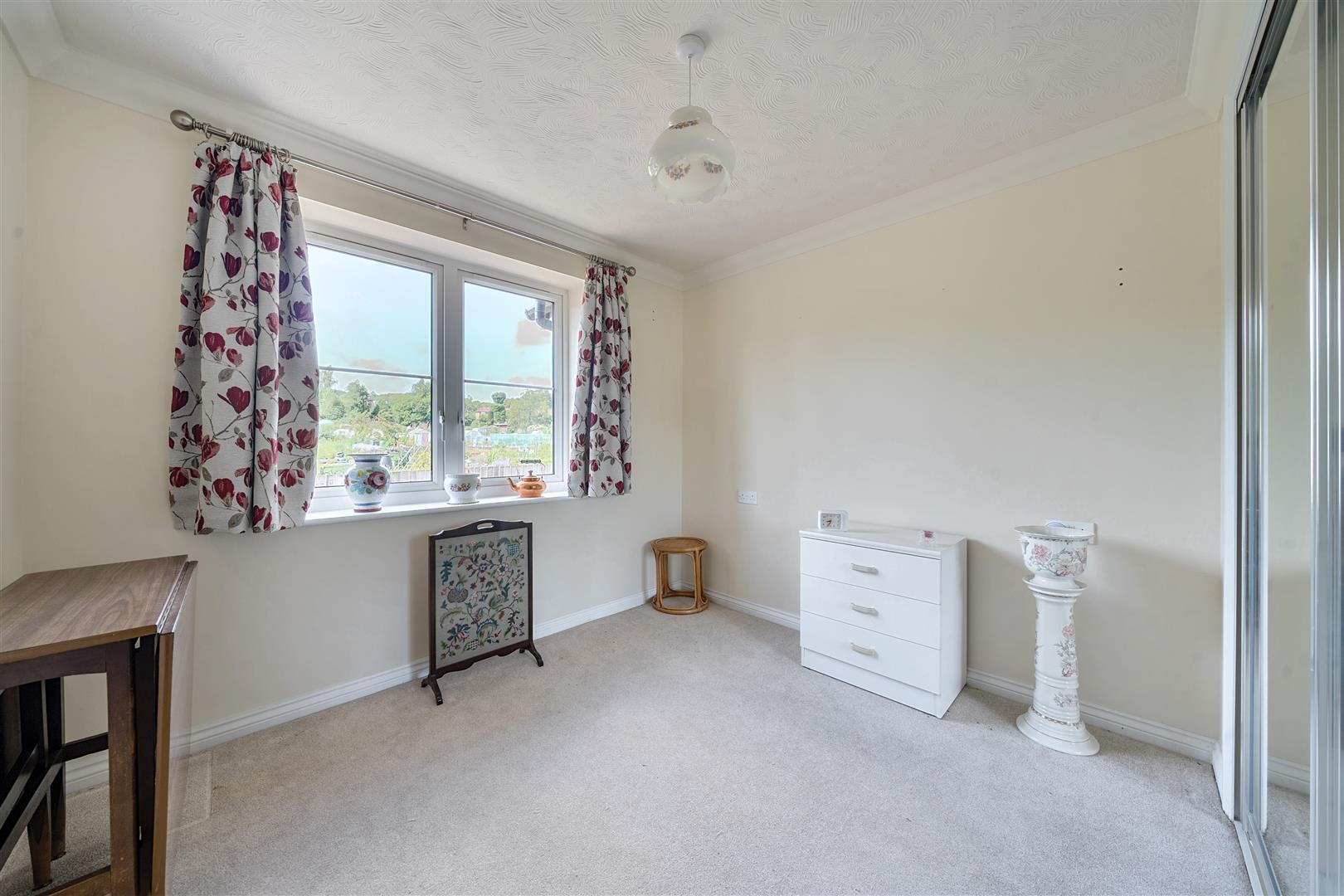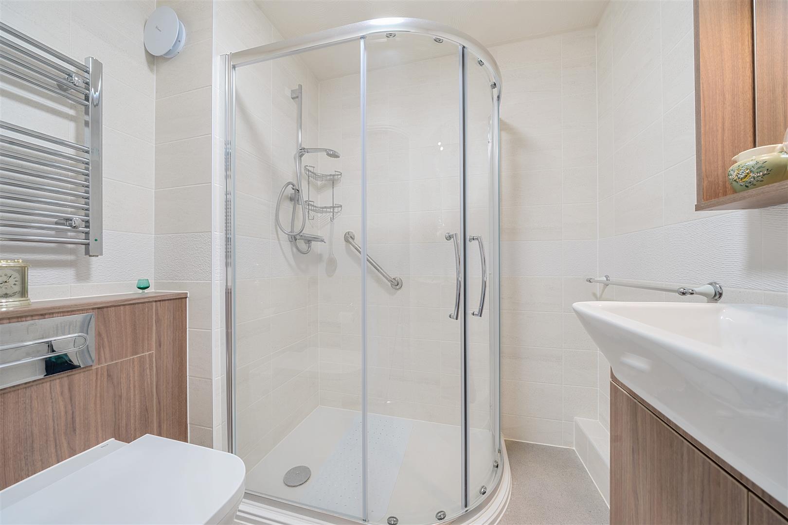 Bedroom One is a good-sized double with a walk-in wardrobe plus an additional cupboard with shelving. An en-suite offers a curved shower with handrail, a WC, wash hand basin with vanity unit beneath and a heated towel rail.