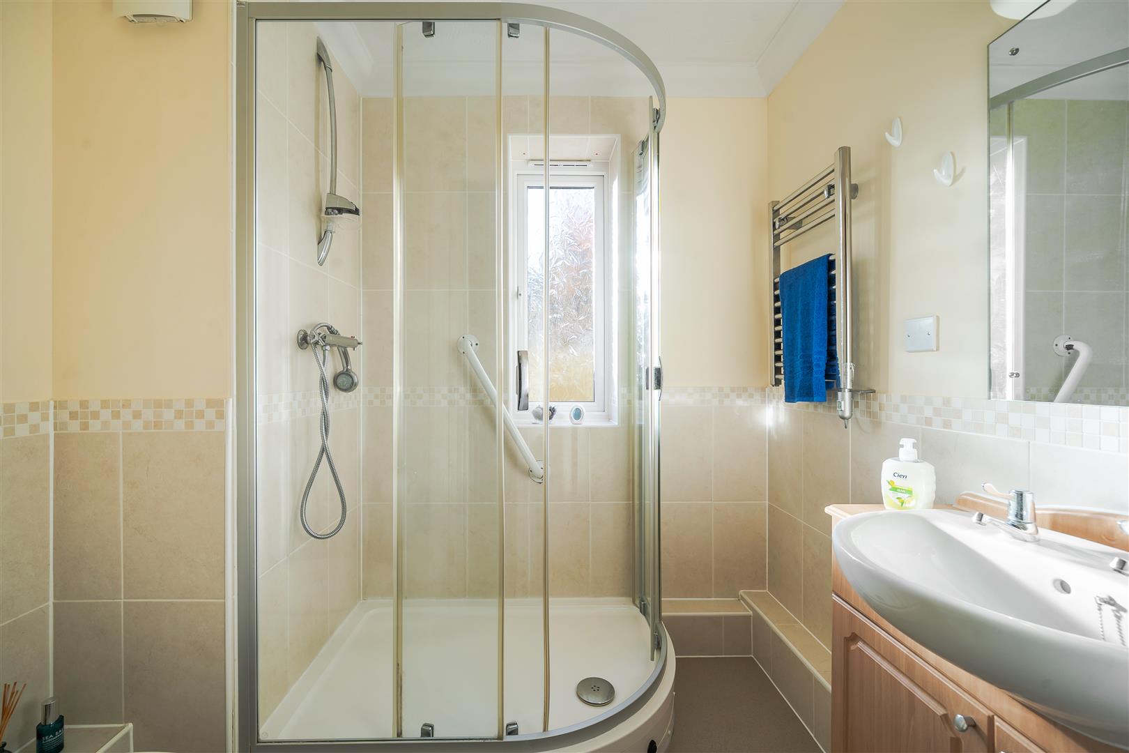 The walk in Shower Room has a handrail, a WC and wash hand basin with vanity unit beneath.