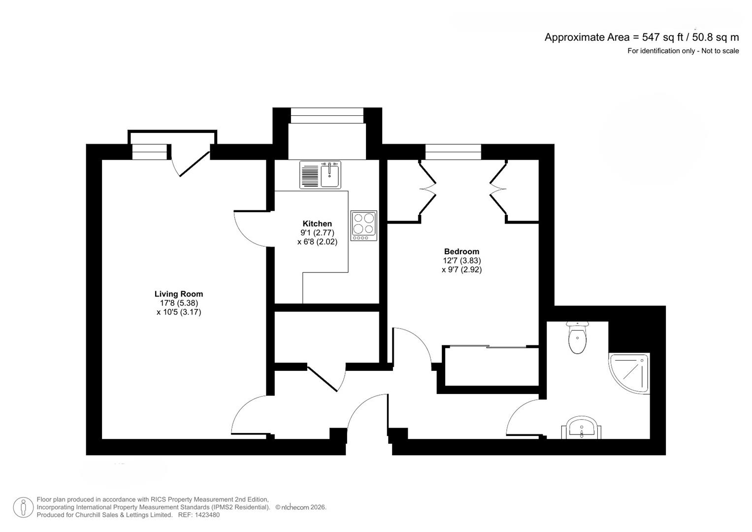 The bright and airy living room offers ample space for living and dining room furniture and benefits from a feature electric fire with attractive surround. A French door opens to a Juliet balcony and a further door leads through to the Kitchen.