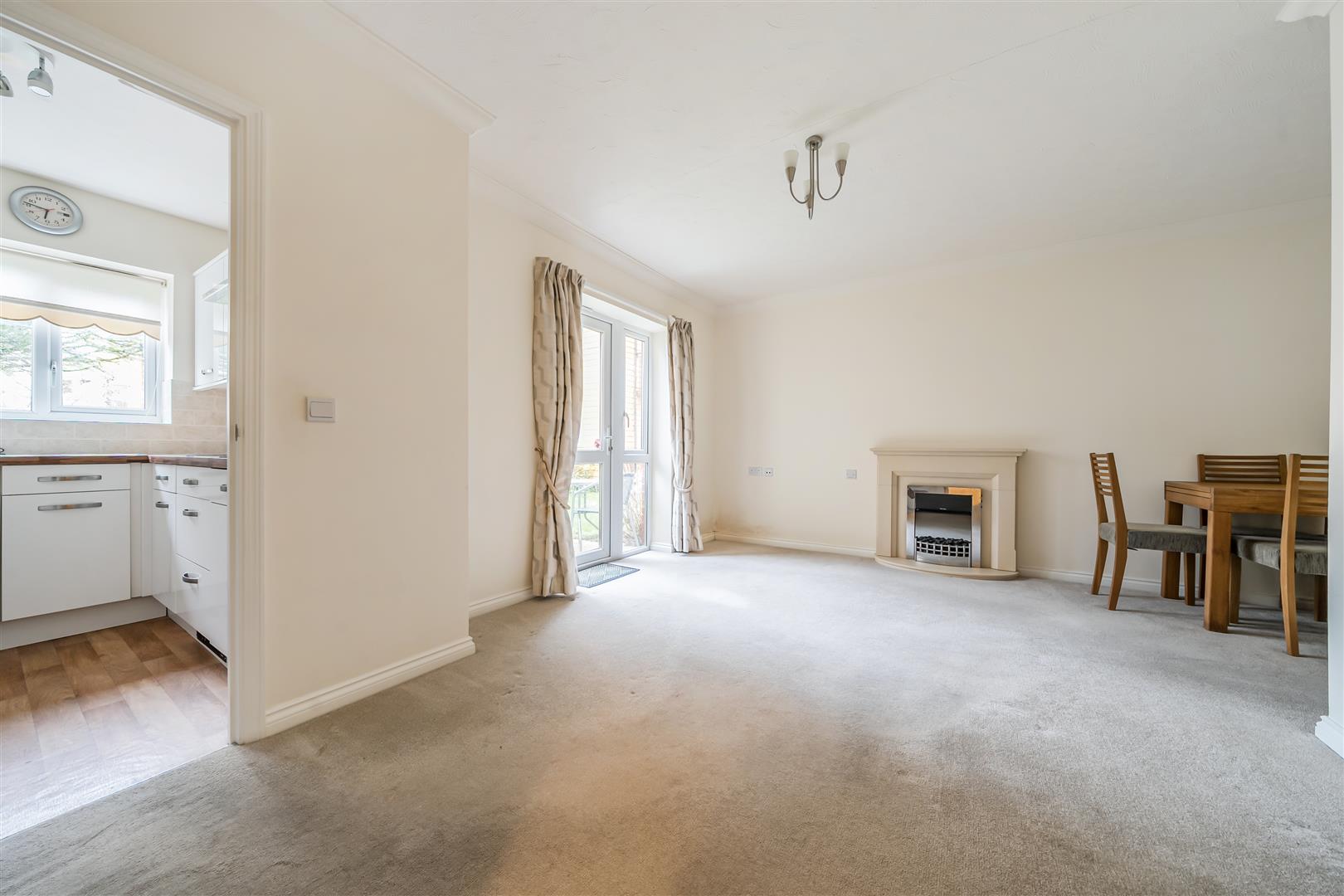 The Living Room offers ample space for living and dining room furniture and benefits from a feature electric fire with attractive surround. A French door opens to the owners private patio area and windows provide natural light. There is also a useful storage cupboard.