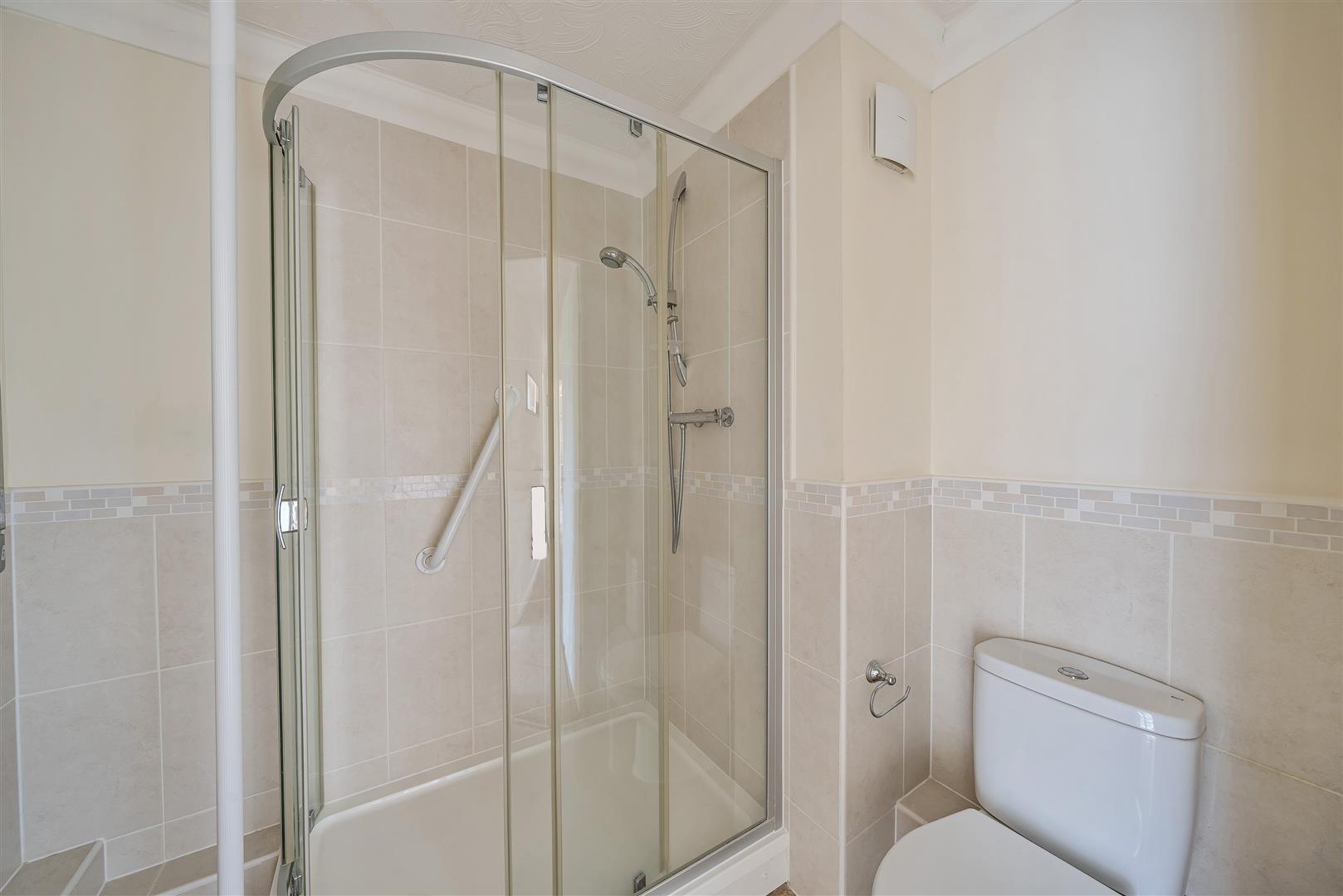 The Shower Room offers a large shower cubicle with handrail, heated towel rail, a WC and wash hand basin with vanity unit beneath, and extractor fan.