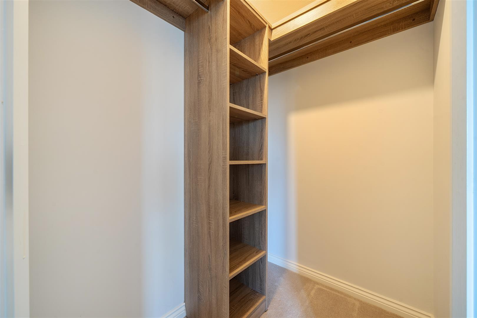 The bedroom is generous in size and offers a large walk in wardrobe. There is plenty of space for additional furniture if required and a window provides lots of natural light.
