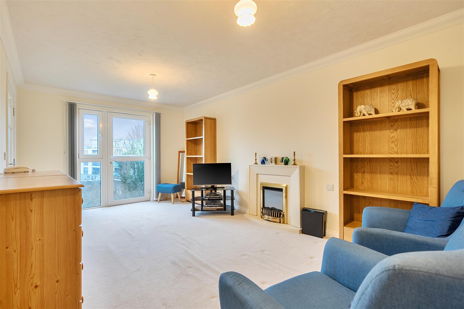 The Living Room offers ample space for living and dining room furniture and benefits from a feature electric fire with attractive surround. A French door opens to a Juliet balcony and windows provide natural light.