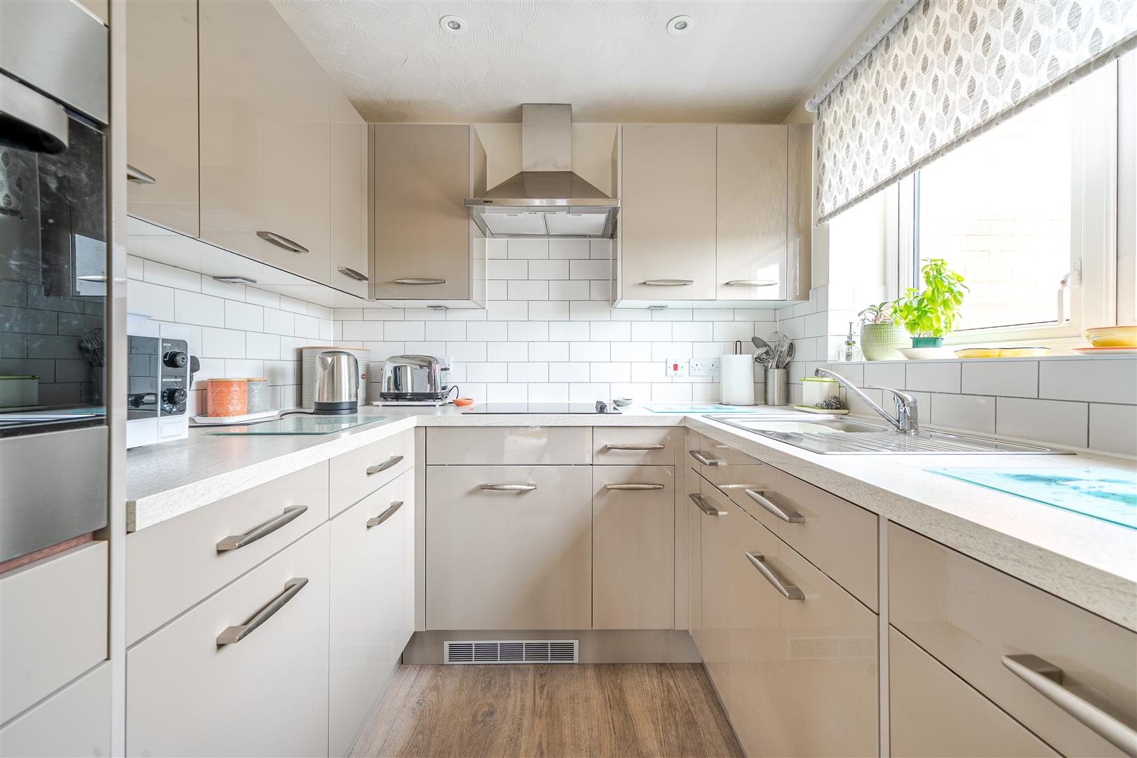 The Kitchen is accessed via the Living Room and offers a range of modern eye and base level units with working surfaces over and tiled splashbacks. There is a built-in waist-height oven, 4-ring electric hob with extractor hood over, washer/dryer, fridge and freezer. A window provides light and ventilation.