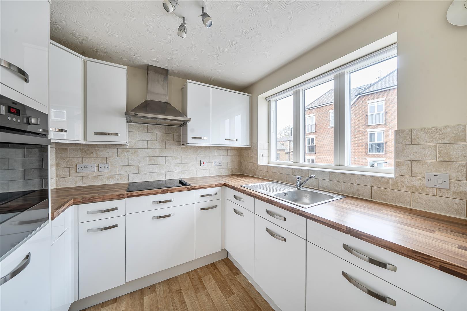 The Kitchen offers a range of modern eye and base level units with working surfaces over and tiled splashbacks. There is a 4 ring electric hob with extractor hood over, a built-in waist-height oven and fridge/freezer. A window provides light and ventilation.
