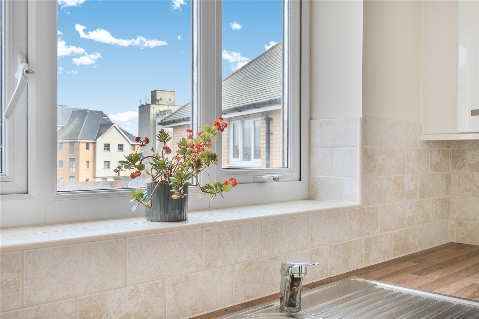 The Kitchen offers a range of modern eye and base level units with working surfaces over and tiled splashbacks. There is a 4 ring electric hob with extractor hood over, a built in waist height oven and a separate fridge and freezer. A window provides light and ventilation.