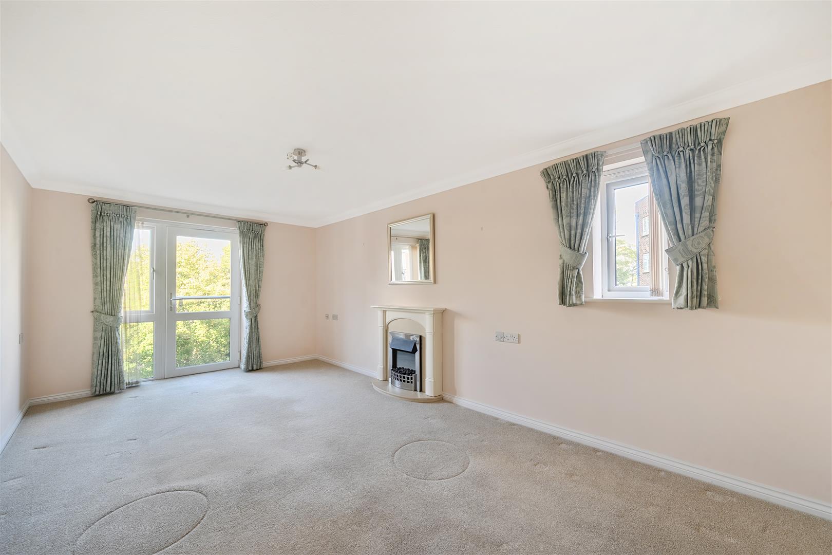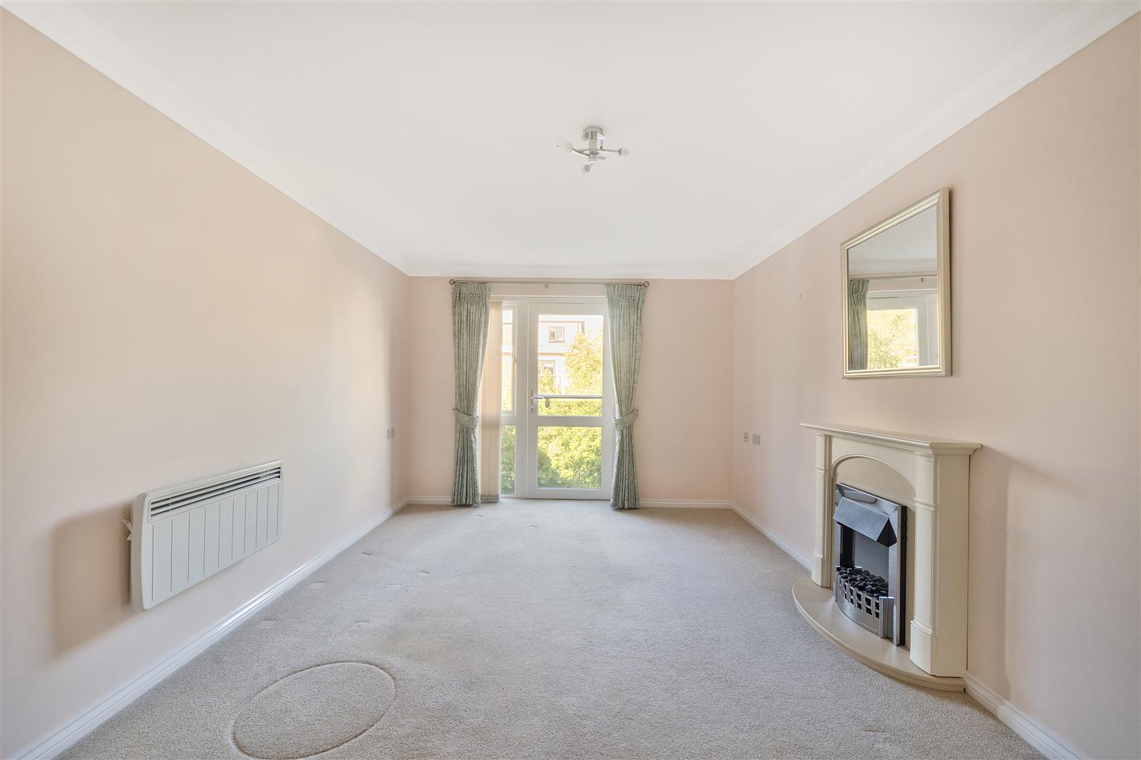 The Lounge offers ample space for living and dining room furniture. There is an outlook over the communal gardens from the juliet balcony and a feature electric fireplace with attractive surround.