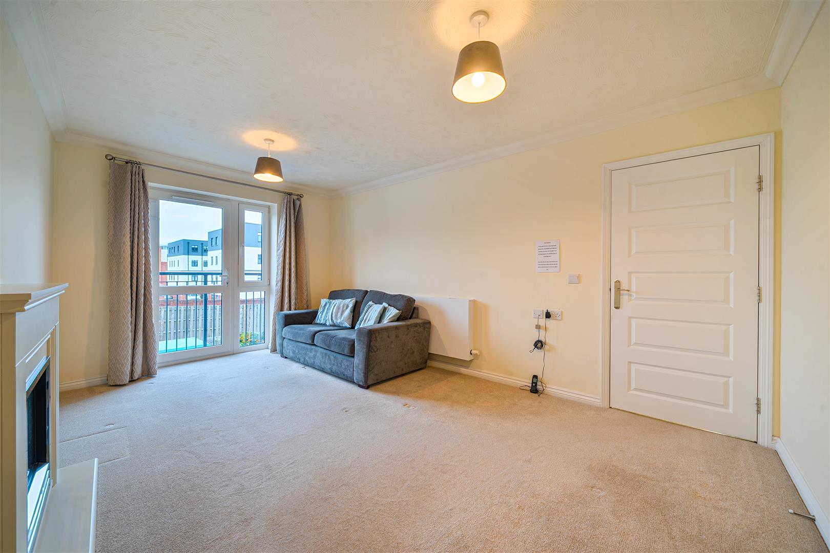 The Living Room offers ample space for living and dining room furniture and has a feature electric fire with attractive surround. A French door opens to a Juliet Balcony with and windows provide lots of natural light.