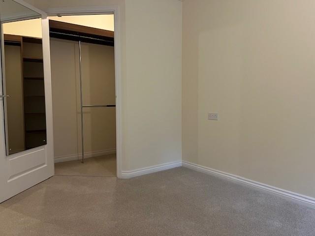 The bedroom is a generous double room with a useful walk-in wardrobe, a storage cupboard and plenty of space for additional bedroom furniture if required.