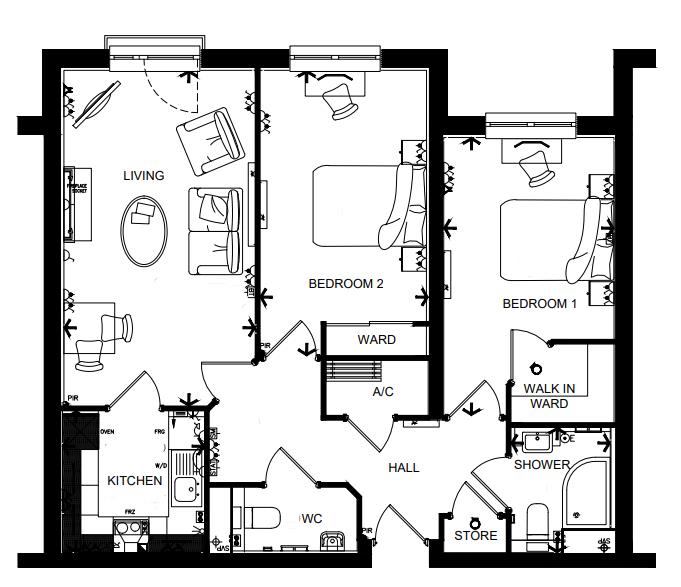 Spitfire Lodge has been designed with safety and security at the forefront. All apartments have an emergency Careline system installed, monitored by the onsite Lodge Manager during the day and 24 hours, 365 days a year by the Careline team. There are integrated intruder alarms, secure video entry systems and sophisticated fire and smoke detection systems throughout both the apartments and communal areas, providing unrivalled peace of mind.
