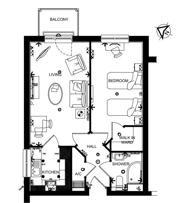 Spitfire Lodge has been designed with safety and security at the forefront. The apartment has an emergency Careline system installed, monitored by the onsite Lodge Manager during the day and 24 hours, 365 days a year by the Careline team. A Careline integrated intruder alarm, secure video entry system and sophisticated fire and smoke detection systems throughout both the apartment and communal areas provide unrivalled peace of mind.