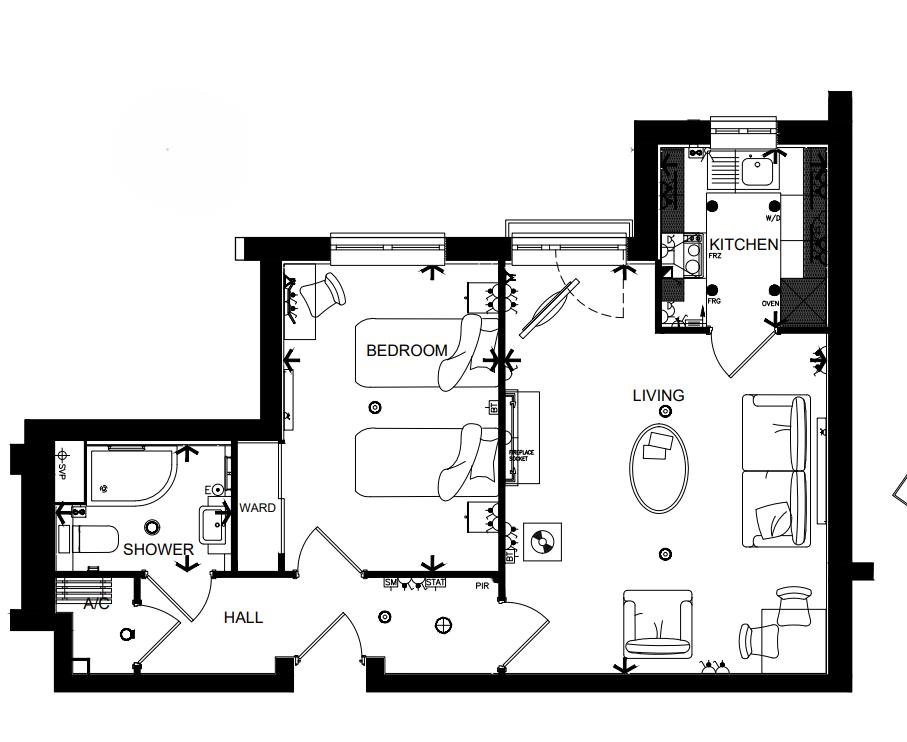 Spitfire Lodge has been designed with safety and security at the forefront. The apartment has an emergency Careline system installed, monitored by the onsite Lodge Manager during the day and 24 hours, 365 days a year by the Careline team. A Careline integrated intruder alarm, secure video entry system and sophisticated fire and smoke detection systems throughout both the apartment and communal areas provide unrivalled peace of mind.