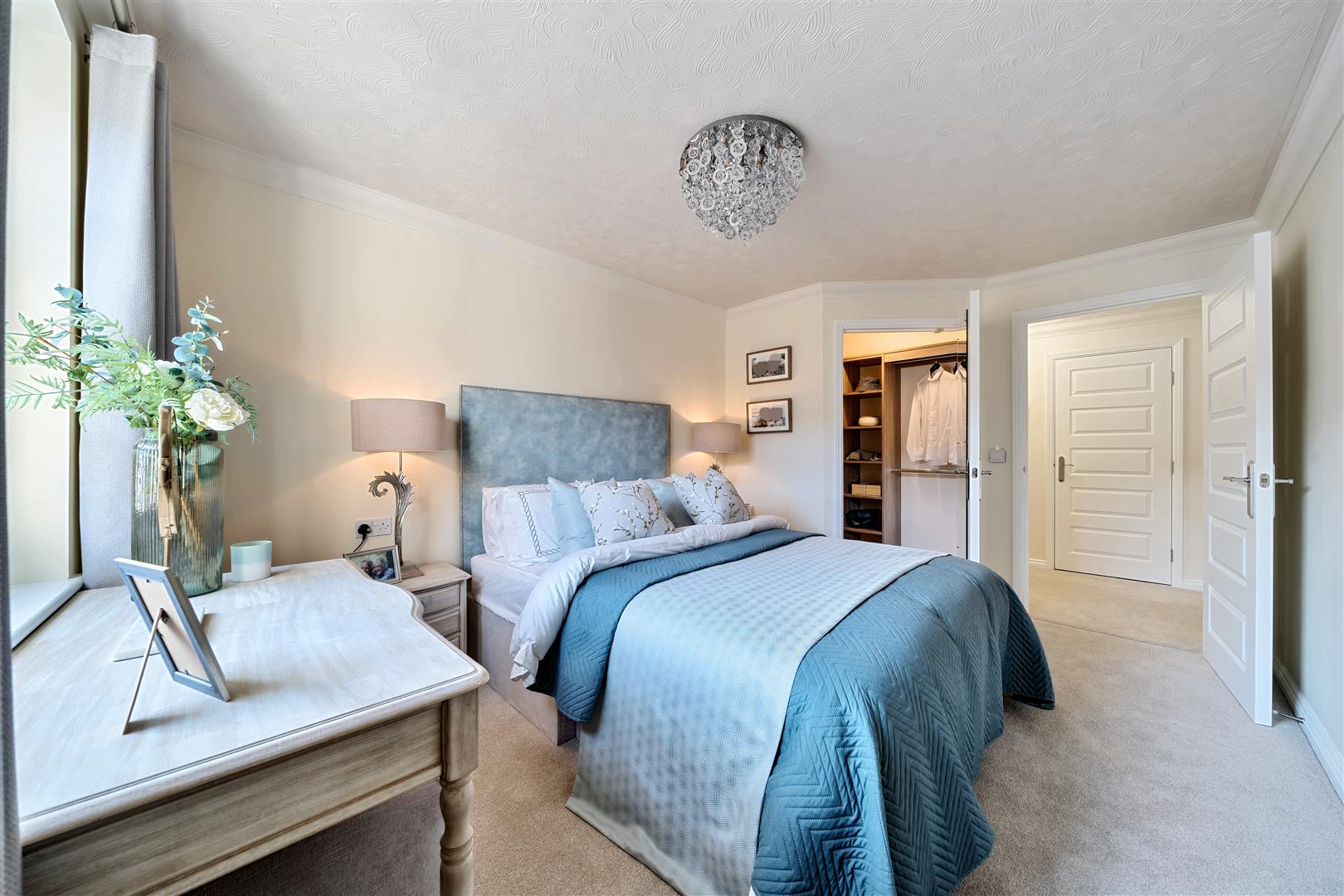 Bedroom one is a good size double with a walk in wardrobe. There is also plenty of space for additional furniture if required. A large window keeps this lovely room light and bright.