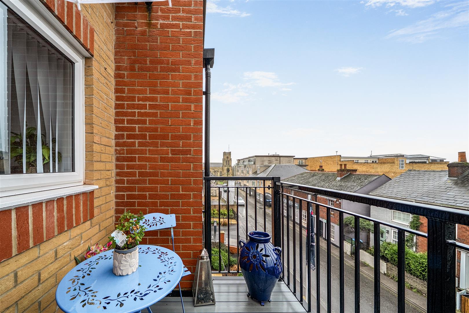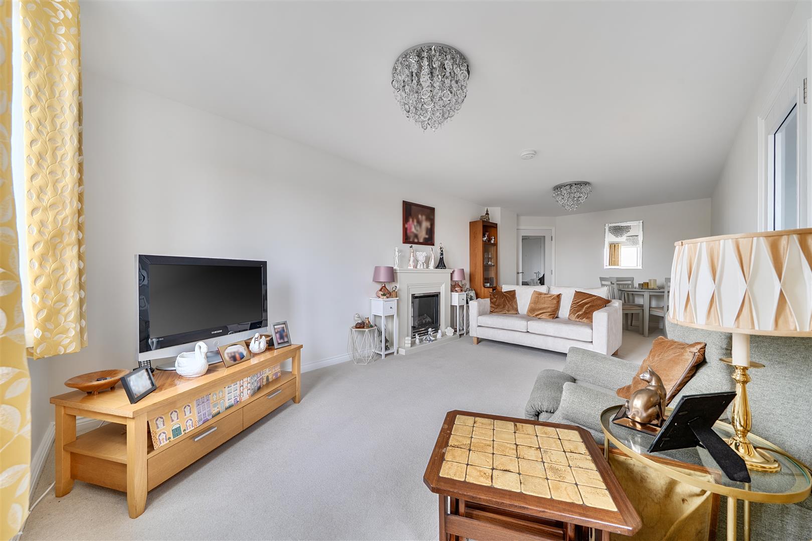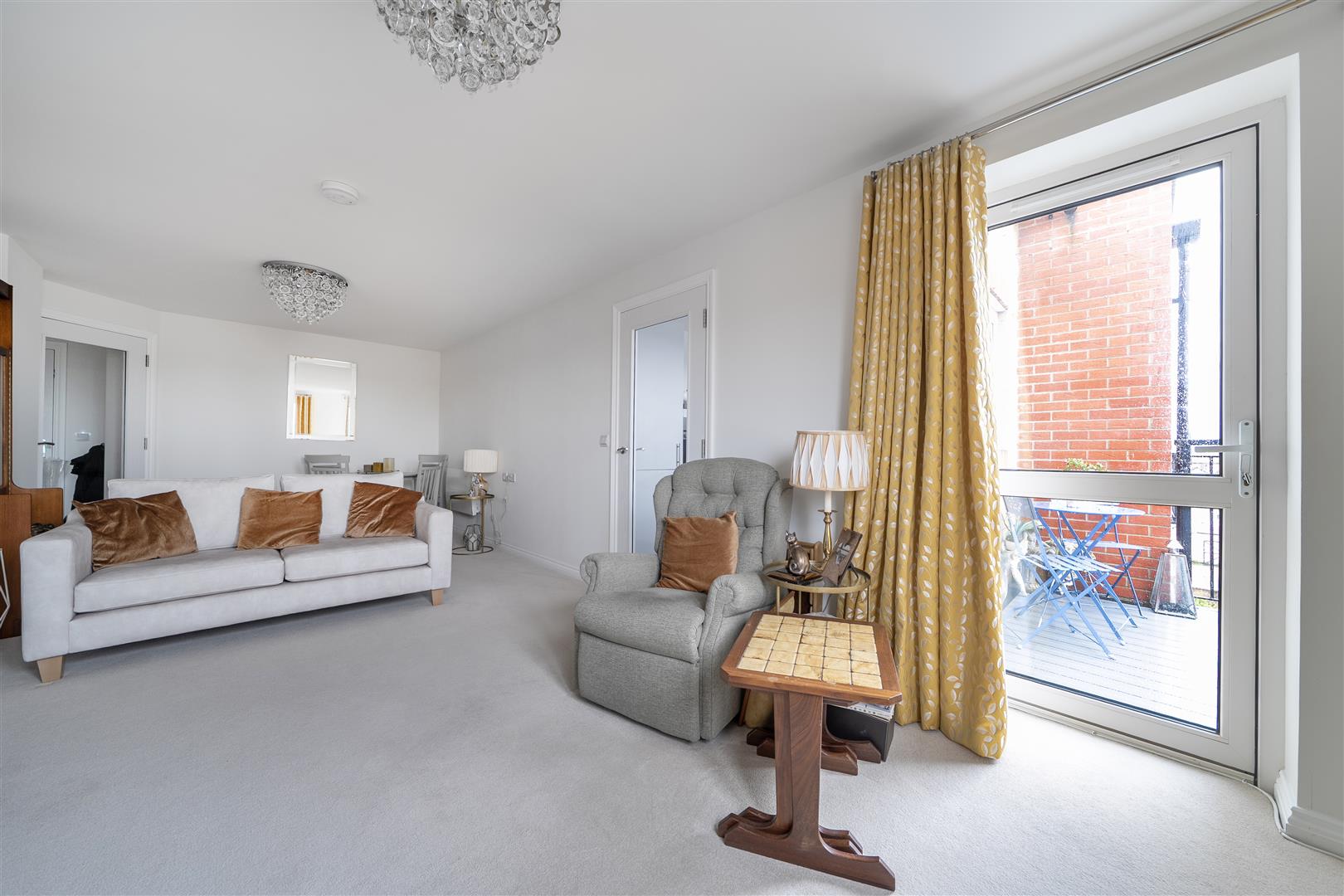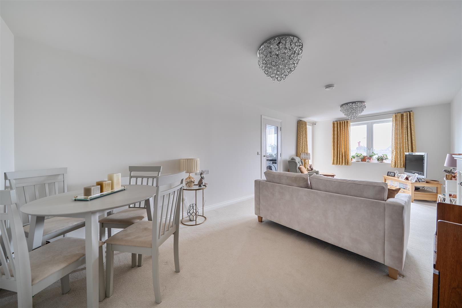 The Living Room offers ample space for living and dining room furniture and benefits from a feature electric fire with attractive surround. A French door opens to a private balcony with views of the Holy Trinity Church.
