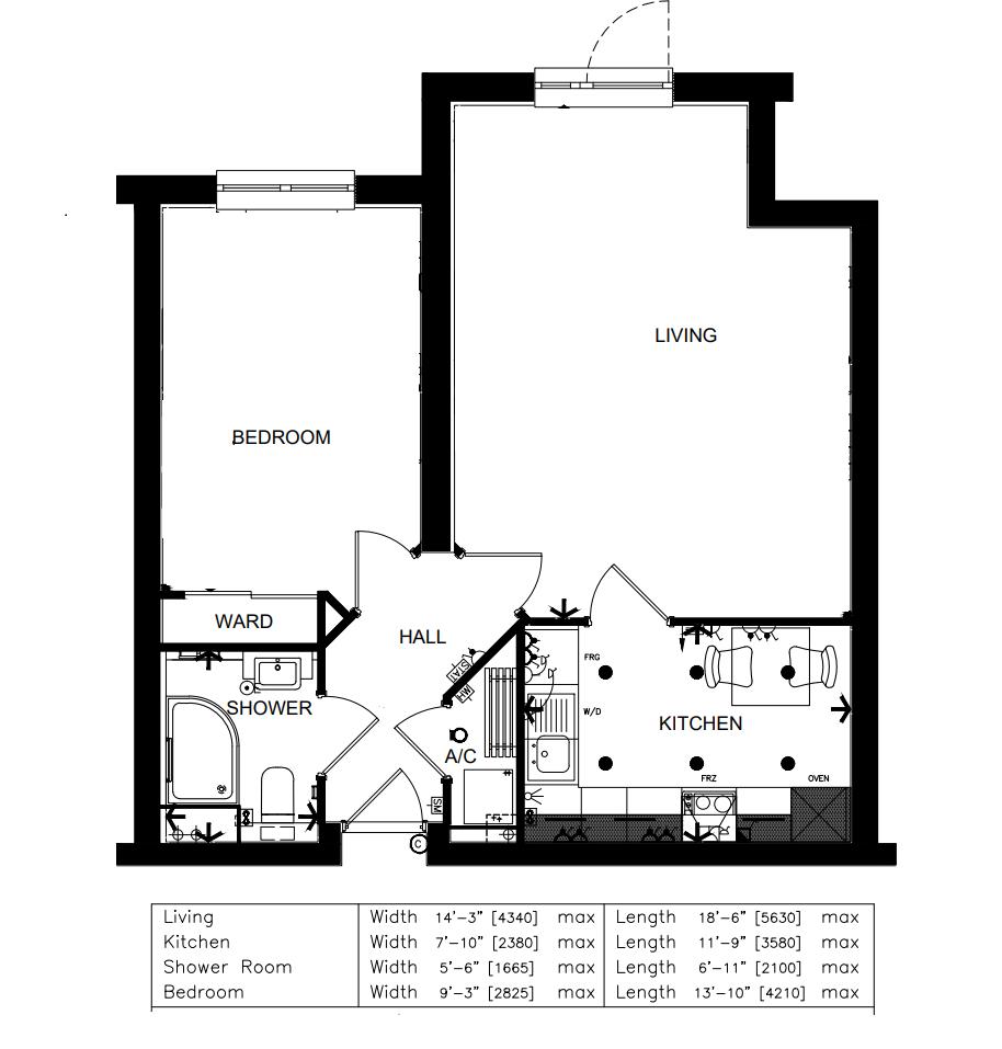 The Bedroom is a generous double room with a useful built-in mirrored wardrobe and plenty of space for additional bedroom furniture if required.