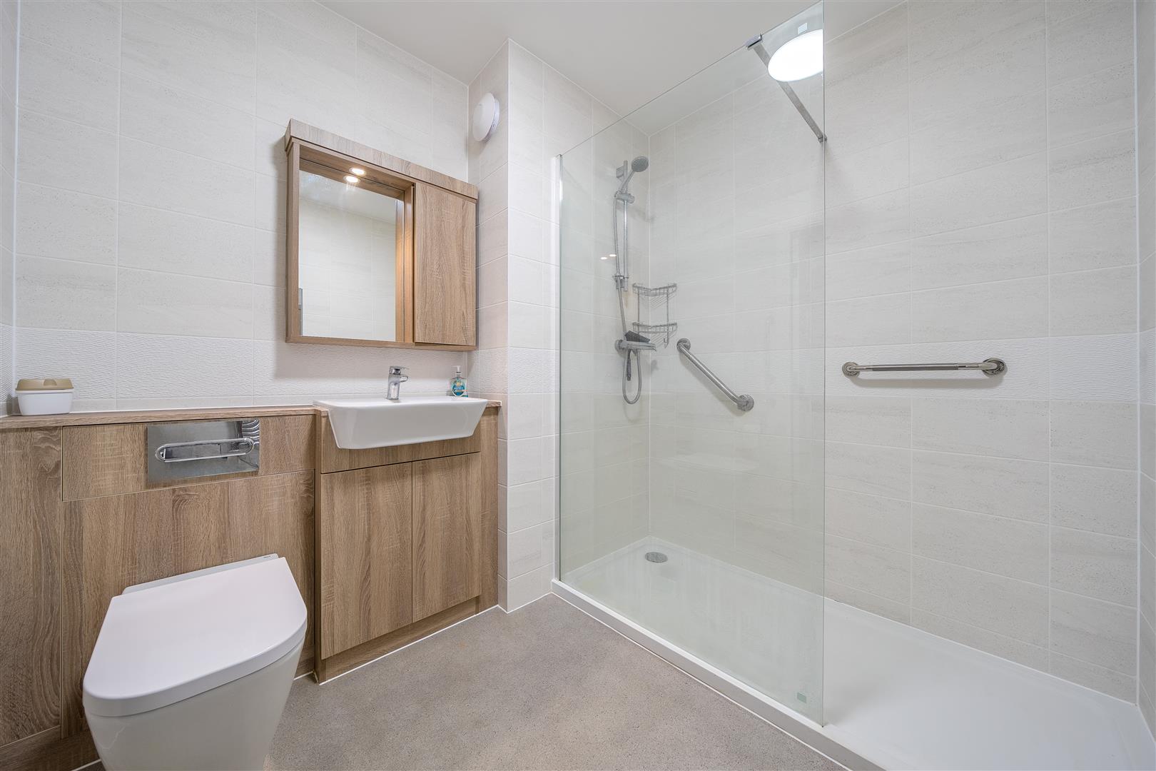 The Shower Room offers a large walk in shower with handrail, a heated towel rail, WC and wash hand basin with vanity unit beneath.